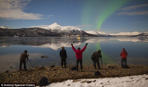 英格兰多塞特出生的安东尼•斯宾塞在脱下工作靴,换上旅行靴,并于去年获得年度风景照摄影师大赛奖后,他在摄影界引起轩然大波。现在他正把他的越野技能和他的摄影技能结合在一起,以期帮助普通人拍摄出令人难以置信的自然风景照。30岁的他已经获得世界知名度,成为该领域拍摄北极光最优秀的人,他这次带领5名摄影爱好者穿过挪威环境恶劣的地形,让他们都有机会拍摄到这次极光展。