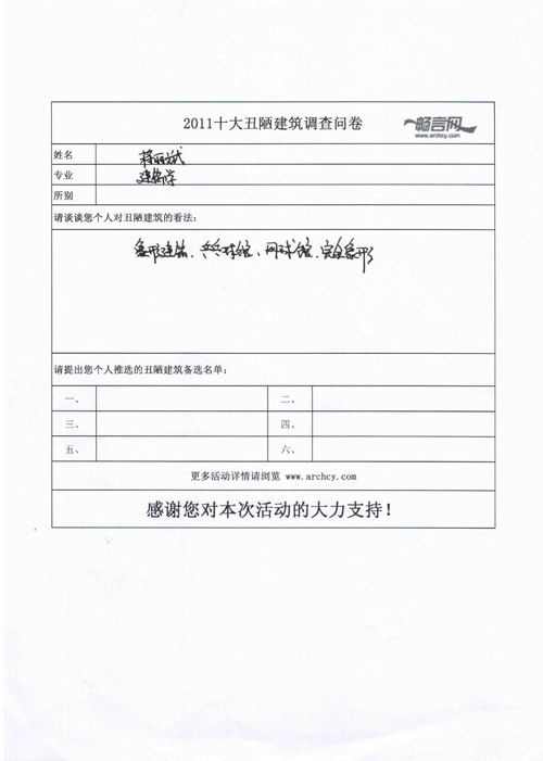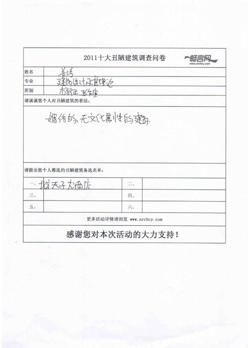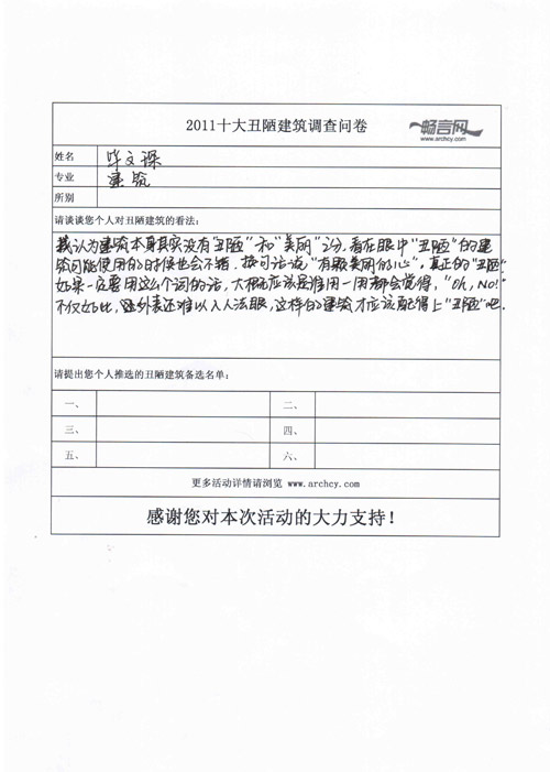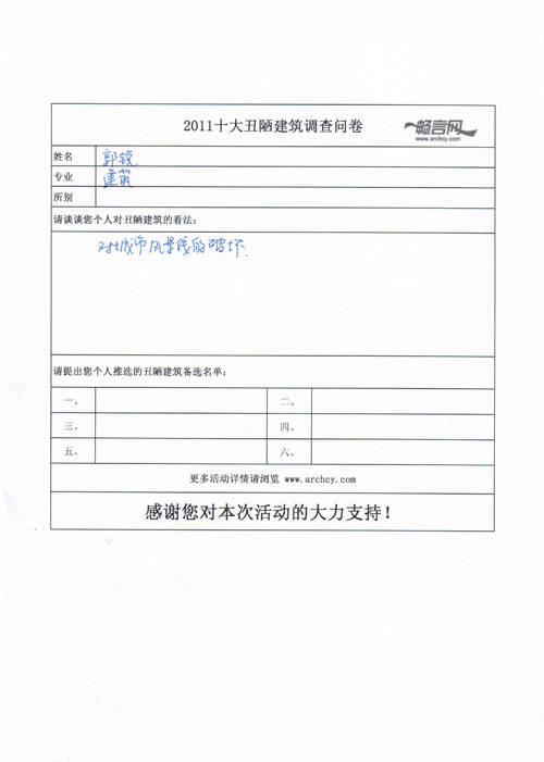 为促进建筑行业健康理性发展,畅言网在举办2010中国十大丑陋建筑评选活动后,2011中国十大丑陋建筑评选活动随即展开。为让更多建筑界人士参与到评选中来,畅言网特走进全国各大设计院,以期聆听来自一线设计师们的声音。以下是我们对上海联创国际建筑设计有限公司设计师们的采访,感谢大家的关注和支持。