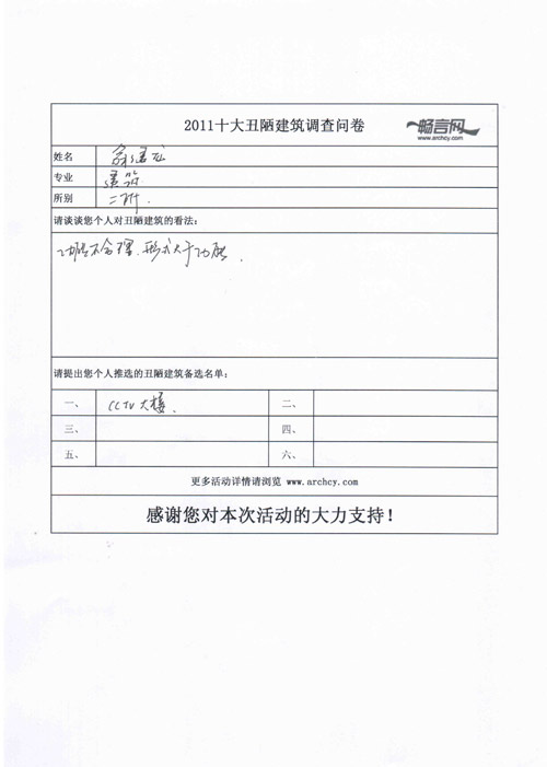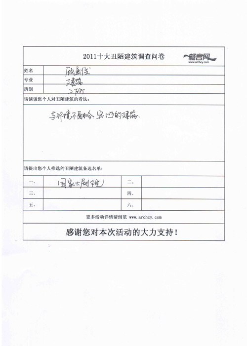 为促进建筑行业健康理性发展,畅言网在举办2010中国十大丑陋建筑评选活动后,2011中国十大丑陋建筑评选活动随即展开。为让更多建筑界人士参与到评选中来,畅言网特走进全国各大设计院,以期聆听来自一线设计师们的声音。以下是我们对宁波市城建设计研究院设计师们的采访,感谢大家的关注和支持。