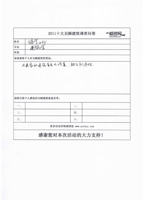 为促进建筑行业健康理性发展,畅言网在举办2010中国十大丑陋建筑评选活动后,2011中国十大丑陋建筑评选活动随即展开。为让更多建筑界人士参与到评选中来,畅言网特走进全国各大设计院,以期聆听来自一线设计师们的声音。以下是我们对宁波市工业建筑设计研究院有限公司设计师们的采访,感谢大家的关注和支持。