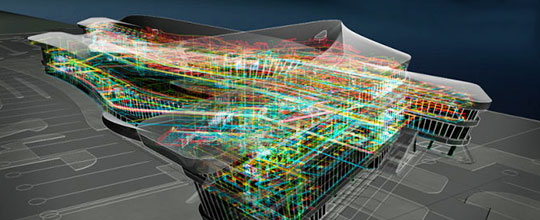 我们单位做的“彩虹门”项目中,从建筑设计角度,BIM极大地解决在设计中出现的问题。功能和业态非常多,在和甲方沟通时,以前是通过效果图或面CAD,很难说清楚。我们现在用模型放在IPAD里,展示给甲方。