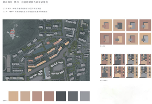 宋建明的色彩规划,为和家园的“章法天成”理念,注入了丰富的地理学基因。在《和家园色彩规划方案》中,宋建明这样写道:“褐+灰”的色系对和家园就非常契合,不仅给居住在和家园的人带来赏心悦目之感,能够让人与自然充分的和谐融洽,还能比较恰当的体现“和家园”名字背后深深的文化的意味……  而这一切美好,可以追溯至世界著名色彩大师让?菲力浦?郎科罗,其在1970年代创立“色彩地理学”理论,主张以调查、测色记录、取证、归纳、编谱、总结色彩地域性特质等实践方法为主要研究形式,目的在于确认某个区域的“景观色彩特质”、阐述这个区域居民的色彩审美心理。