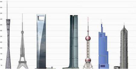 超高层的竞赛比较图,随着全球的变暖,资源的短缺,海平面的上升,超高层浪费了人类大量的资源。