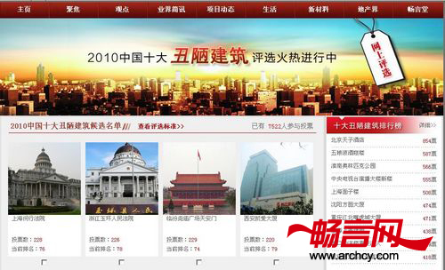 自2010年9月启动中国十大丑陋建筑评选以来,截至12月31日网站共收录丑陋建筑近100座,近8000网友上网参与评选,参与报道媒体11家。在北京、广州、天津、西安、上海五地举办沙龙,共邀50余位专家共同探讨评选标准。活动进行的过程中,我们采访了全国各地区设计院的院长、总工等业界权威人士,通过大家的声援,实现促进建筑行业发展的目标。在这里我们特别感谢各位老师的支持:王明贤、包泡、顾孟潮、布正伟、何镜堂、韩林飞、李虎 、金立昌、谢远骥、张轲、顾均、王刚、白林、刘延川、范黎、米俊仁、李阳、刘墨、金秋野、王戈、吴文一、张华、褚智勇、彭乐乐、吴耀东、陆静、兰京、孙亚杰、李小宁、范继宗 ……