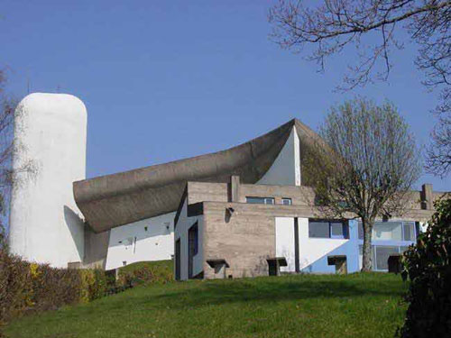 3,形状变换;将某一部件分裂,变形之后,重新放进建筑系统,这种手法如同绘画中立体主义画派,使人对习以为常的形式的异化产生感官刺激与联想,从而产生审美的愉悦。