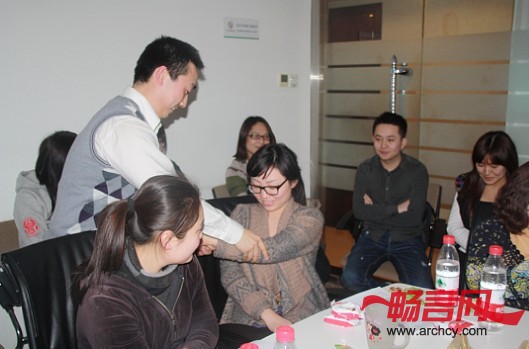 养生专家通过专业的讲解、幽默的语言、丰富的互动让大家在轻松欢乐的氛围中学到了很多养生知识,了解冬季养生的注意事项。在经络养生环节,讲师逐个指导在场设计师穴位技法,大家受益匪浅。在提问环节,设计师针对一些职业病症、工作压力缓解、冬季减肥等话题纷纷踊跃提问,讲师给予耐心的讲解。