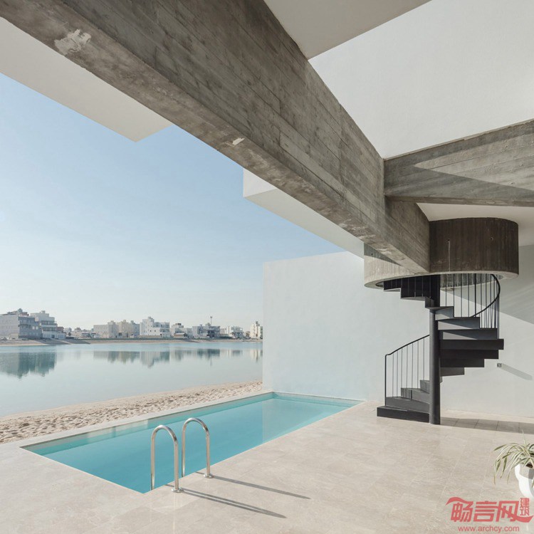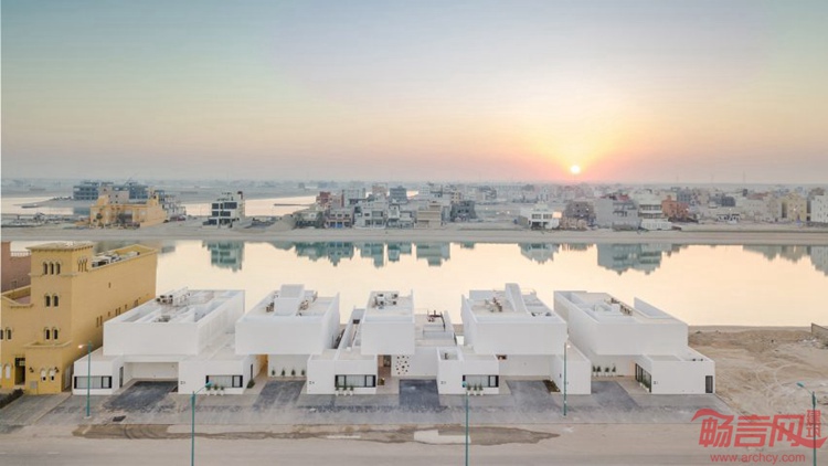 Associated Architects Partnership公司设计了南科威特Khiran度假村项目的住宅建筑。这是一组排屋,分别是五座线条简洁的白色房子,俯瞰运河。Areia住宅的几座建筑中,根据泳池和露台设置而各有不同,比邻200公里运河,该运河是为了营造度假设施而专门开挖的。