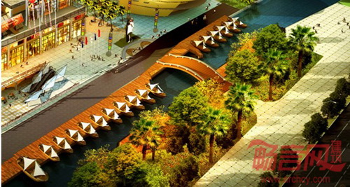 商业部分沿河景观效果图