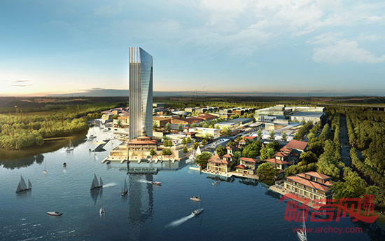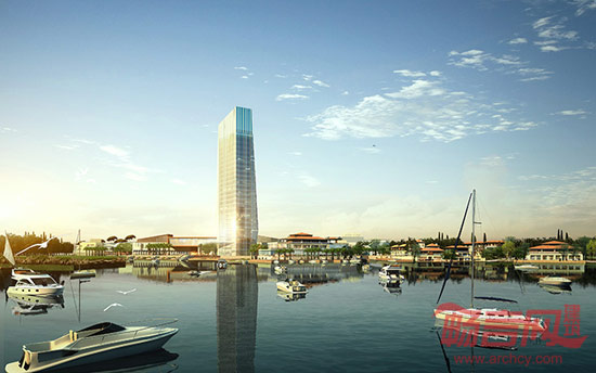 项目位于浙江宁波第二大天然湖——余姚牟山湖,项目地块周边水路交通便利、水质清冽,重峦叠嶂。基地为商业用地,周边多为商业、居住以及商住混合用地,具有一定的商业潜力。设计规划环湖路贯穿基地,将整个牟山湖地块联系为一个完整的休闲度假区域,更好的利用牟山湖以及周边的自然资源。