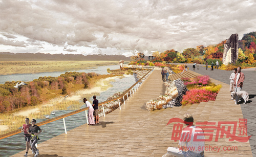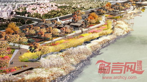 与时代同步,“笔墨当随时代”。设计中融入可生长的体验文化创新理念,在生态本底的基础上,以组团的方式置入少量的旅游体验服务设施(咖啡、茶室、酒吧、休闲餐饮,主题会所),增强场地的体验维度,更重要的是完善现代景观的游憩功能。立足生态与文化,结合旅游体验营造一个趣味、复合的公共景观空间,以极强的包容性让体验者乐驻于此,从而融入城市文化与品牌的展现,以生态繁荣滨岸的形式满足城市时代发展需要的诉求。