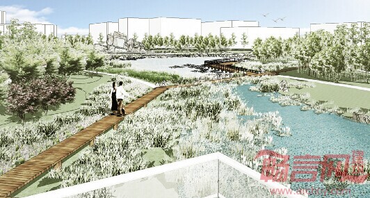 湿地公园的设计遵循“自然中的自然,自然中的人文”的理念。在大自然面前,任何人类活动都是渺小的,但在我们内心深处一直坚信,有一种方式能使人与自然进行有效沟通,并产生共鸣,因此我们在本项目地块南北向的自然景观轴线上以生态湿地公园的婀娜姿态来呈现并构建未来城的自然景观语言系统,而在东西轴线则主要以人文景观的行为来展现并构建未来城的人文景观语言系统,从南到北形成了一条条东西向独具个性的社区人文景观轴线,并与南北轴向的自然景观交织在一起,共同形成了未来城独有的景观语言——“自然中的自然,自然中的人文”。 从而达到人与自然和谐发展,实现可持续发展的最大化。