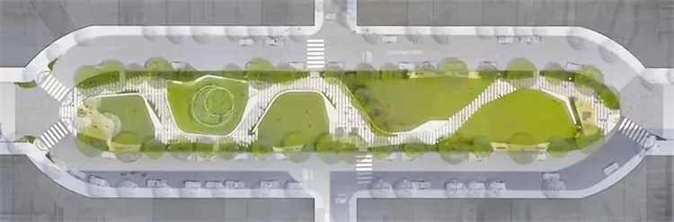 道路系统由浇筑的混凝土铺筑而成,看起来就像单个的“平板”,有圆角和“滑块”,沿着南北轴线排列在公园的南北轴线上。这两种元素的组合允许在路径的宽度上有一个连贯的调制,以适应现场地形条件及公众需求。