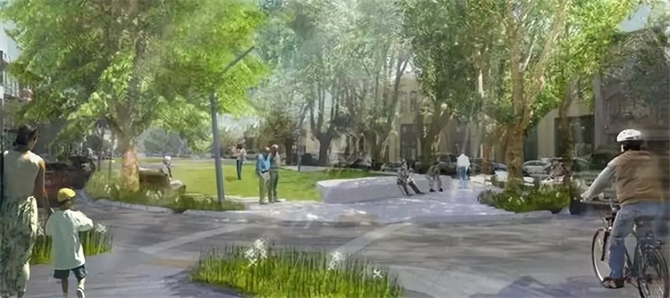 在一片蓬勃发展的绿色空间的背景下,它仍然是技术和设计公司的餐饮活动及零售中心。设计团队和社区住户共同工作了三年,用来深化改进总体规划。团队使用参数软件研究评估土地使用率、人流模式、树木情况和排水系统,并且生成了道路和墙布局的多个3D迭代模型。