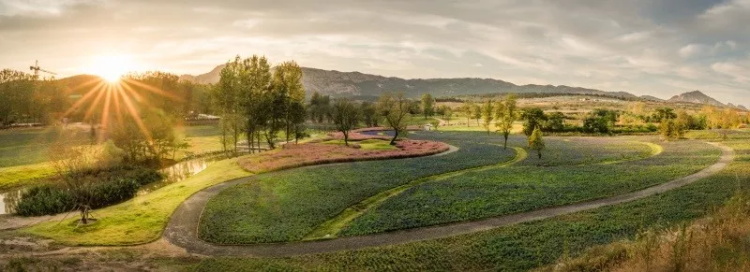 青岛融创藏马山马道景观项目位于青岛西海岸经济区,隶属于融创阿朵小镇,距离青岛市区85公里。项目占地21.3公顷,毗邻藏马山山脉,依山傍水。周边地块包含居住区、商业区、农业生产区等。藏马山山脉海拔高度395.2米,宛延30公里,自然植被茂密,山间水系发达,依托其优质的自然资源和得天独厚的自然景观,马道项目被打造成周边地块的绿色核心区,同时也是整个阿朵小镇项目的生态廊道。