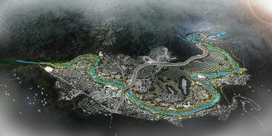 项目地作为峨眉山旅游的起点,利用峨眉山巨大的优势,同时挖掘场地的生态特色,融合区域地质文化、茶文化、宗教文化及武术文化等资源,将峨眉河游览体验打造成一次放松心灵、感受自然的净化之旅。