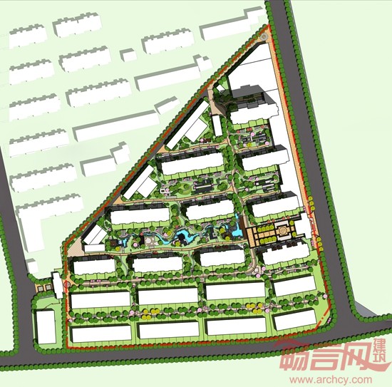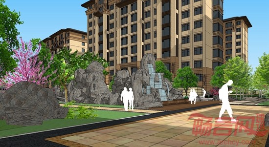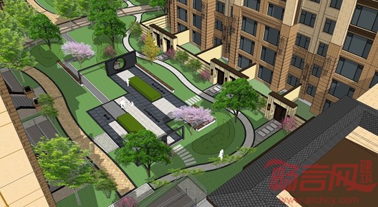 宅间结合功能布局,合理划分场地空间,处理好入口道路空间和休闲活动空间的关系,以精致设计为主要方向。通过多种不同的造景手法,使住区内外空间环境协调,注重社区规划布局的层次感和梯度设计,功能的合理分配。