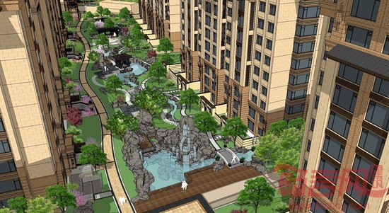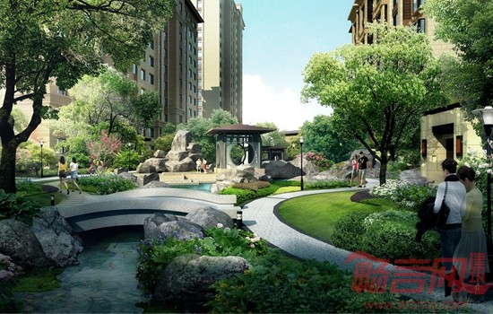 以上三个层次营造立体景观:第一层次为坡面的绿化景观带营造;第二层次为高大植株所成形的高空间绿化营造;第三层次为建筑物立体绿花面的营造(包括建筑物的阳台,天台花园等)共同营造舒适高端的核心园林景观。