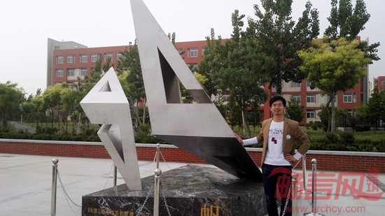 设计师徐守珩与雕塑作品“帆”
