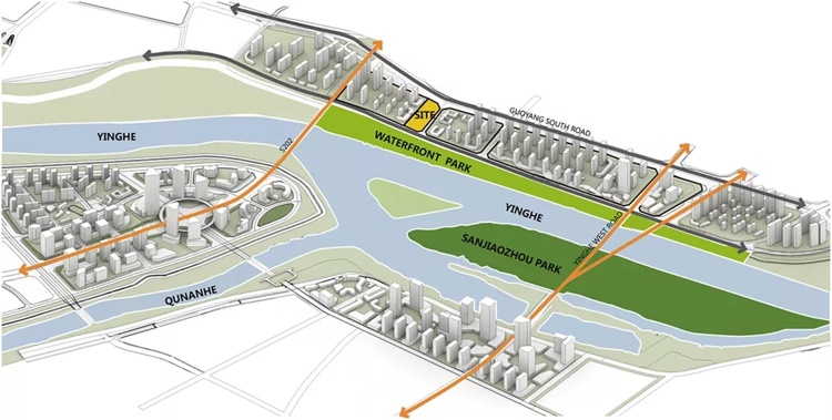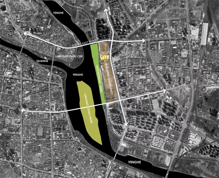 在阜阳市新一轮城市总体规划中,三角洲地区被定位为以生活、商业、商务功能为主的城市中心。三角洲城市中心将打造泉北半岛金融商务区、滨河生态休闲区、颍东游憩型商业休闲区和城市高品质居住社区等。我们的场地便扮演着东岸城市更新的先行者。