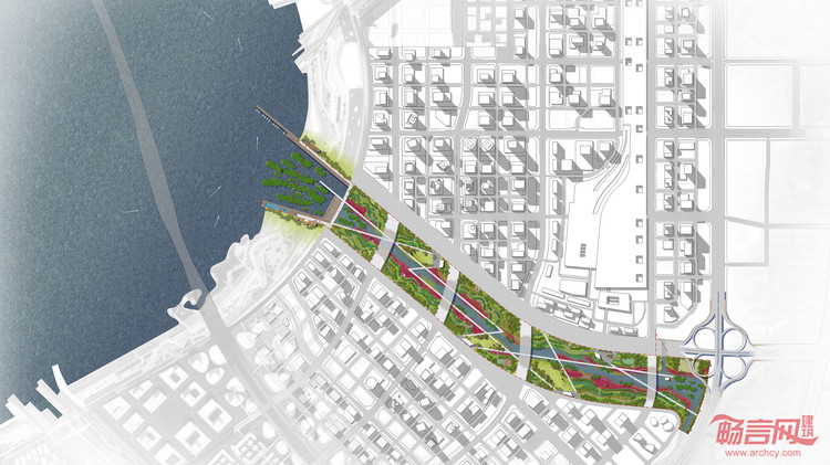 项目简介:McGregor Coxall应深圳国际招标公司邀请参加位于深圳的前海桂湾滨水公园设计方案国际竞赛。一条全长2.2公里、宽245米的景观环境廊道如同丝带般在海滨舒展开来。这条新的通路不仅激活了整个水廊道低洼地区,还增强了城区与城区之间的步行连结。人口稠密的前海深港现代服务业合作区位于深圳的西海岸,在不久的将来将建成高品质复合功能的优质滨海生态水岸,为超过一百万在此居住与工作的人们创造一处世界级的永续生态公共空间。