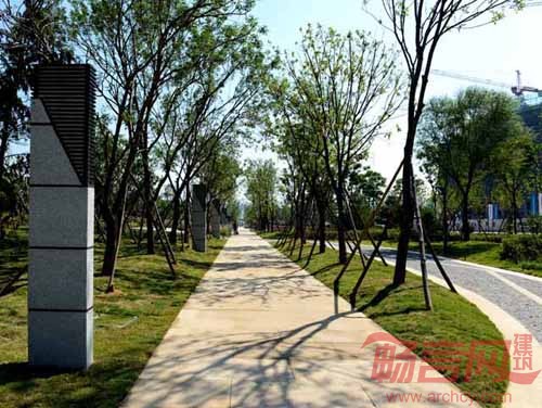 ECOLAND易兰从自然与人文相互融合的设计理念出发,利用场地的地形高差,将自然的地形肌理与场地融合,自然的坡地突入到城市广场中,实现自然与人工环境的交融。设计重视自然资源保护发展与再循环利用,并从地域性植被的选择、雨水回收系统、低碳节能服务性建筑系统运用,生态环保材料的选用等方面,诠释出“自然、生态”的国际化设计理念。