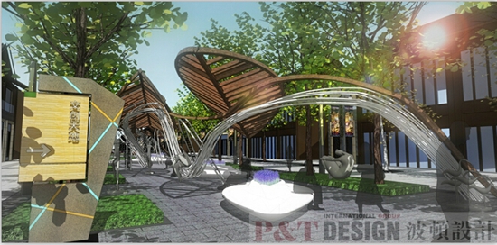 设计中运用巴蜀得天独厚的山地元素演变出龙洲湾步行街的文化墙,万物之灵的巴南湖水作为活动广场旱溪元素,浑然天成的巴南东温泉其水纹的机理演变成步行街铺地的纹饰,。让漫步在步行街的游客一一感受着巴南浓厚的自然气息。