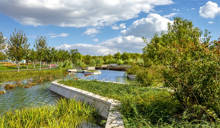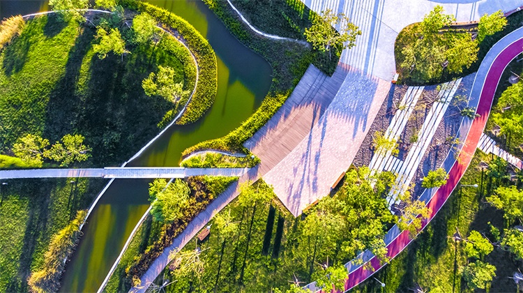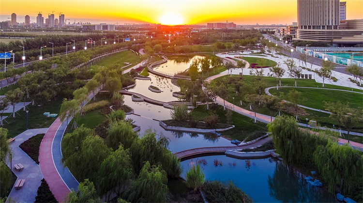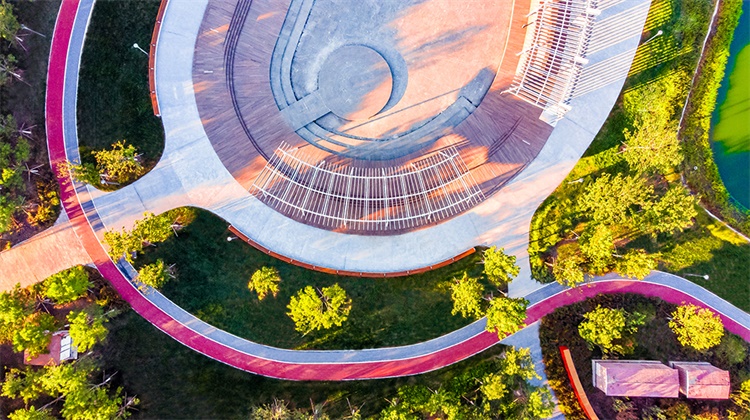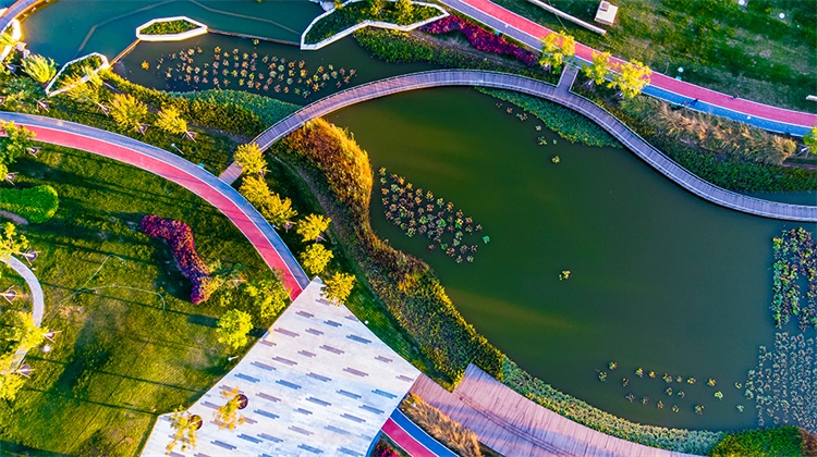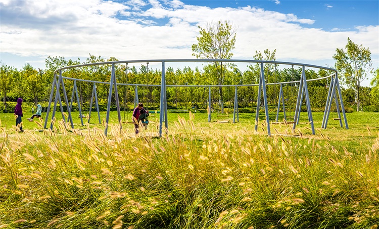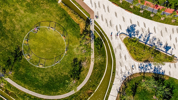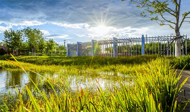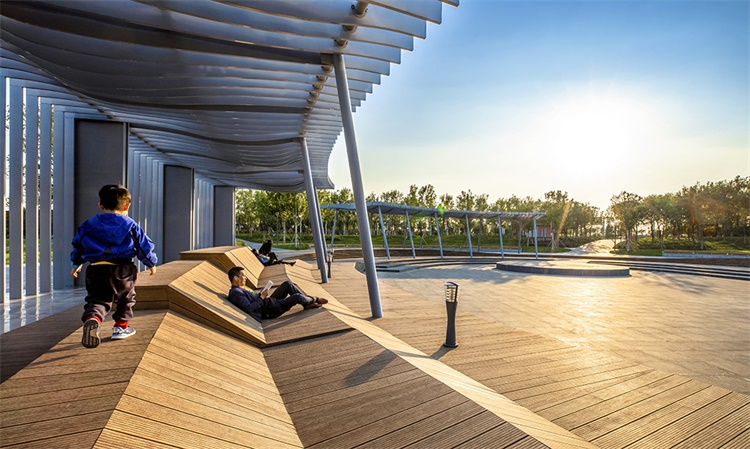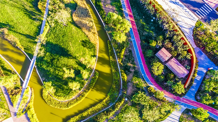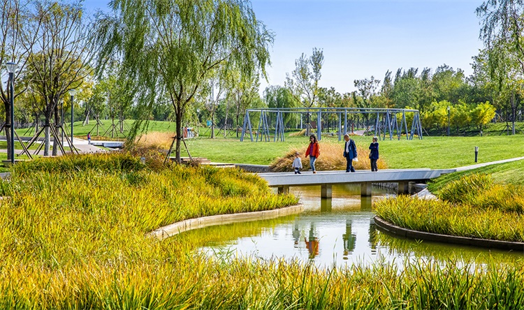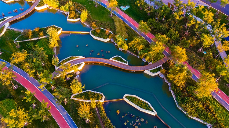 天津中新生态城甘露溪公园以弹性作为触媒。充分考虑新兴城镇和使用者的需求,提出可操作的分期建设计划,奥雅设计的团队在绿色海绵基底上(活体滤芯),构建一个灵活性适应性渐进性的开放空间体系的思路,以非固化的方式,给未来建设预留空间。构建人本自然且可持续的城市开放空间,很大一方面取决于它是否与城市生态、周边社区生活共生的机制,项目的可持续性除了对生态技术的运用,也包含对公园维护运营的考虑,及随城市发展使用多元化的适应性。