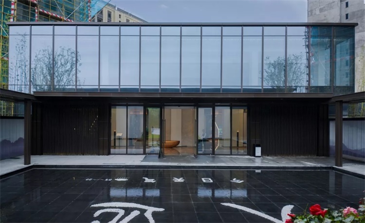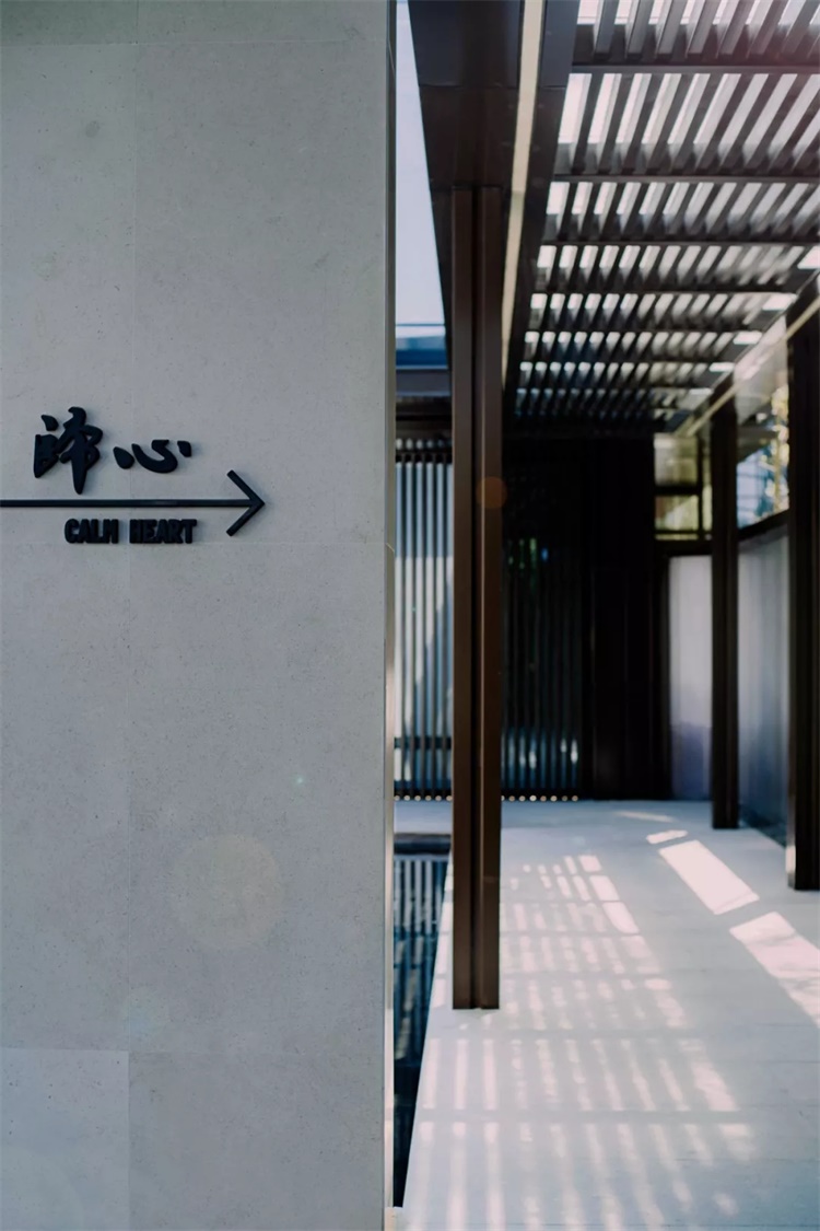 取水于场景之中,环水的光影通廊与两侧透过U型玻璃所呈现的朦胧水墨山影,如洗尘于诗情画卷之间。水与石、与景相映成趣,自然山水意境在这里展现的淋漓尽致。