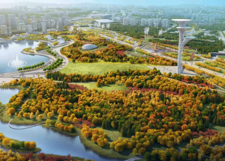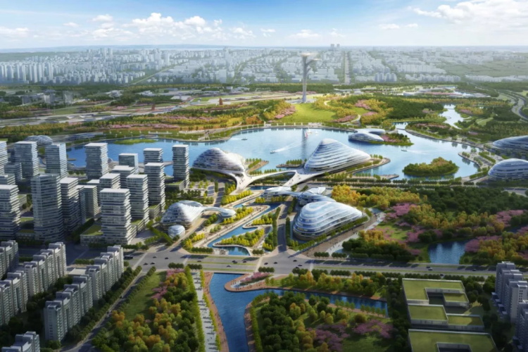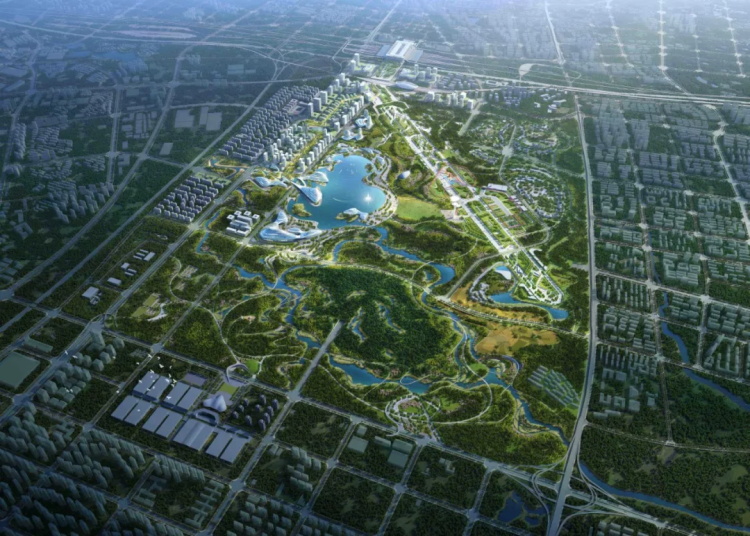 其中国际科学交流中心与锦绣湖组成的公园核心区是公园承担城市职能的首要支撑。骆岗机场作为上个时代的工业遗产和城市记忆被保留下来,形成以发展记忆和都市活力为主的公园活力翼。南侧十五里河湿地与森林水绿交织,由此形成以生境营造和生态保育,生态科普为主的公园生态翼。