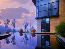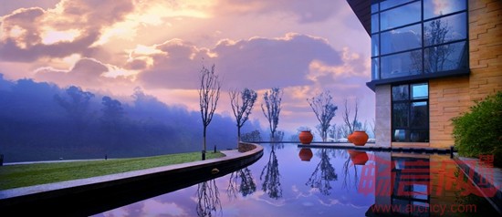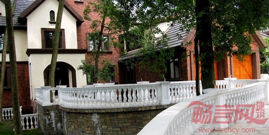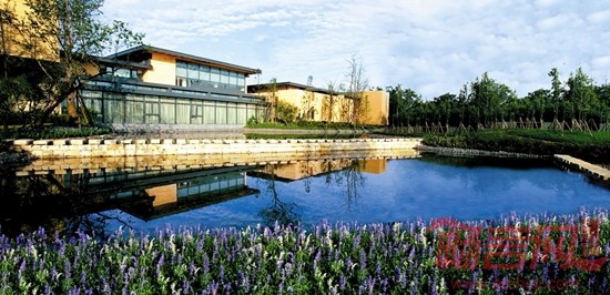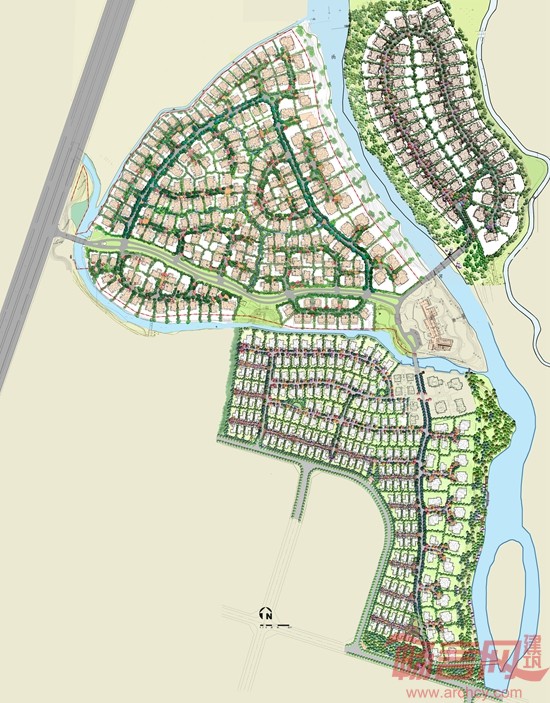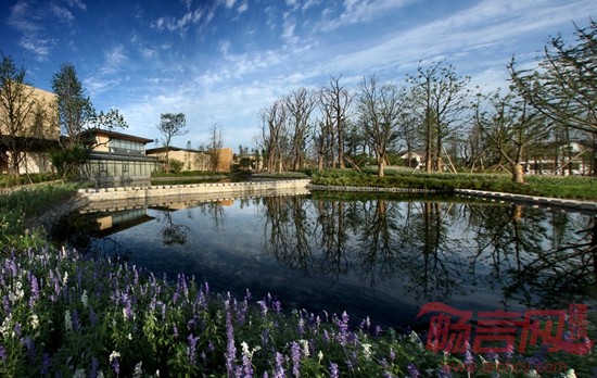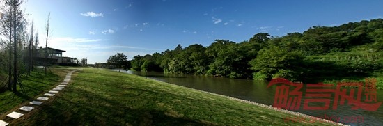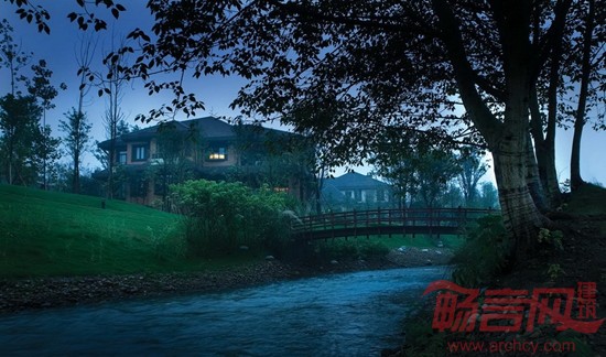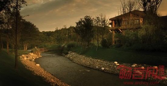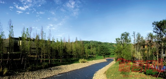 设计团队将自然河道引入设计中,利用滨河绿化带,打造乡村牧歌式的外围景观,同时梳理水系,强化“长桥”美景。长桥郡会所设置在杨柳河、碾河交汇处,水系沿着牧马山麓顺势而下,别墅沿缓坡延伸排列,与林荫、道路高低错落,共同形成纯粹的“自然”风景。
