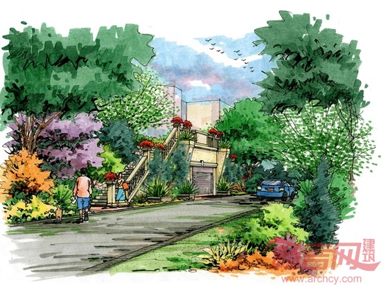 整个项目以笛东首席设计师袁松亭先生所倡导的“无设计”理念为主旨,将设计语言融入自然环境,减少人为设计痕迹,摒弃不切实际的设计堆砌,强调行业内的多专业融合。设计团队提出“风景大道、入户景观、水系景观”的整体设计构架,运用植物营造出深宅大院的居住意境。设计方式主要是以体验和舒适感层面为核心,打造自然、宁静、舒适的景观环境,同时结合山地特征,通过挡墙的处理与植物的结合形成优美的山地建筑景观,同时也满足了私家私密性的要求。