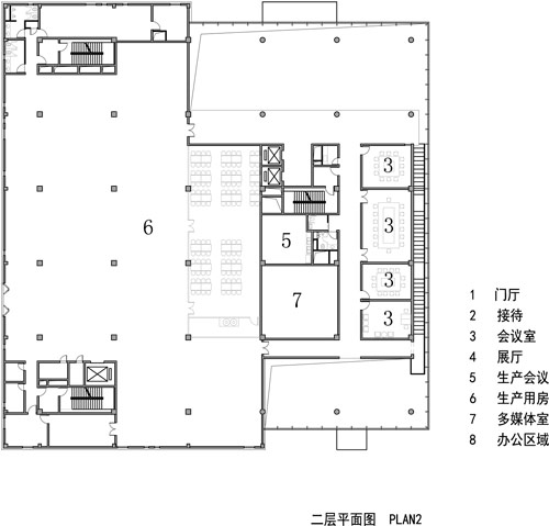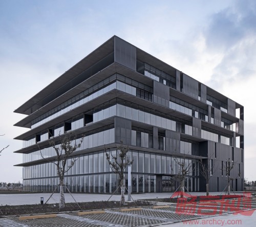 这是一栋集办公、研发和生产功能为一体的复合型办公楼。设计采用“方”与“圆”的形体与景观构图,影射古代阴阳学说对于空间的哲学理解。