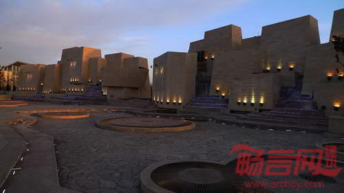 冬季,水瀑关闭,水之墙摇身变成了雕塑(图10)。除去墙身本身的丰富细节外,受阴山壁画启发,在墙体上还镶嵌了4个取材于内蒙古文化典型题材的浮雕,如骑射、舞蹈等(图11),从而在漫长的冬季里雕塑也能给市民带来文化自豪感的熏陶。