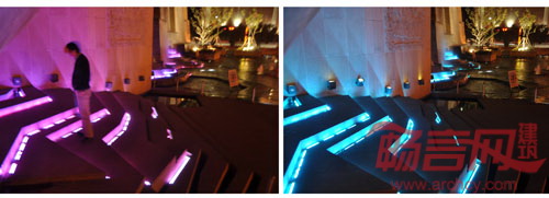 2011年5月广场建成后,这里不仅成为鹿城的新标志,还是夏夜儿童趋之若骛的戏水胜地。入夜灯光投射下色彩变换的水幕,成为环岛街头华丽的一景(图15,16)。高峰时期广场能聚集上千人,俨然已成为市民最喜爱的集会地之一(图17)。