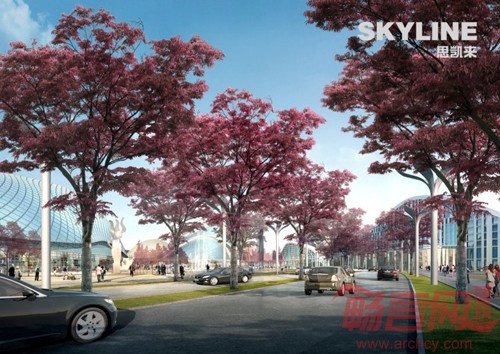 设计团队通过中央林荫大道将地块自然划分为南北区。北区为生态山高级住宅及SOHO区。中央林荫生态艺术大道成为项目枢纽,并直接连接起两侧各主要商业广场及主题商业设施。林荫道南侧为兰花谷商业区,由五个兰花花脉构成一个完整的建筑群体,并坐落在森林MALL之上,成为项目的核心。兰花谷南侧为小尺度特色步行街——绿叶街。兰湾及运河将最南侧兰花主题酒店岛分隔成一个安静的四面观景的岛屿,成为项目最南端的特色区域。基地周围被水系及森林湿地公园环绕,构建成一个独特的城市场所与生态环境。