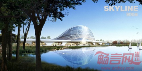 酒店为“兰花”的根部,“蓝湾”为核心,弧形花叶为四个独立的商业体。中央水世界为盛开的花蕊。北侧的高尚住宅区也为叶子造型,成为兰花完好的背景陪衬。整体规划格局成为一个完美和谐的有机组成,有力地表现出在长春城市发展进程中对自然与生态的关注和追求。