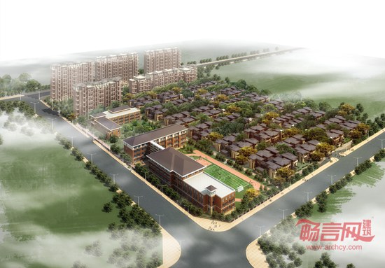 本项目分为高层住宅组团和低层住宅组团,分别位于小区北侧及南侧。道路系统为完全的人车分流,地面布置人行道系统,地下结合地下车库布置车行道系统。北侧高层住宅组团利用前后两排楼之间空地形成两个集中的块状绿地,布置大尺度的园林景观;在南侧低层住宅组团则由每户住宅的南北小院构成分散的点状绿地,各排之间空地形成带状绿地。建筑立面风格为草原式风格,特别注意同周围自然环境的配合,形成了一种具有浪漫主义闲情逸致及田园诗意般的典雅风格,建筑主体深红色面砖与顶部白色粉墙形成强烈对比,底部配浅色石材更显品质感,整个建筑材质更有利于建筑外立面效果的耐久性。