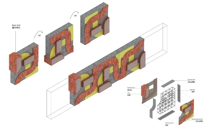 从时尚界纺织品和图案中得到的启发, 北京时尚创意工厂(Beijing Fashion-Factory)振兴了一个曾经的工业场所, 成为一个丰富的、具有创造性的活力时尚办公空间。织物的编织特质被用作设计驱动力, 通过参数化设计及数字建造的方式来定义各种空间及外立面的风格、改造生成建筑的” 第二层表皮 “。该设计运用了一系列时尚设计师的调色板, 包括悬链, 缝合, 图案和编织。这个概念与理论家 Gottfried Semper 早期的建筑概念化有关, 他追溯了 "墙" 这个词的词源, 回到了它的纺织品和织物的起源, 空间的划分并不是简单地用砖石来定义的, 当代混凝土, 玻璃和金属, 还包括织物的悬垂作为外壳, 以及后来纺织品和图案的应用, 用于挂毯的形式等, 既用于建筑的被动保温与隔热, 以及审美和装饰功能。