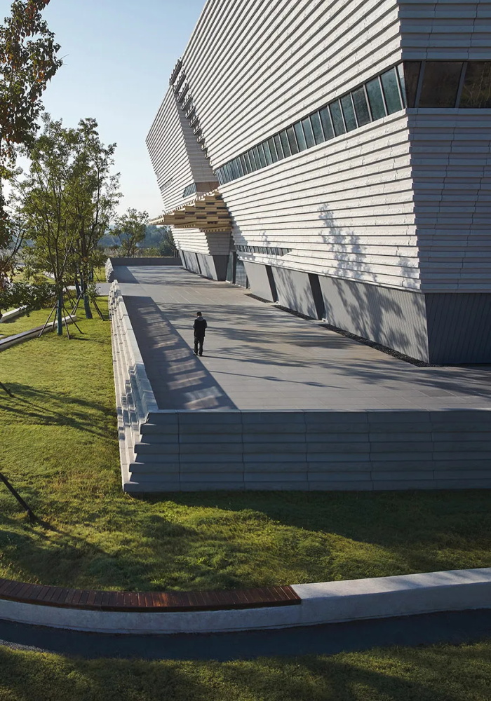 金湖博物馆建设用地约3.4万㎡,总建筑面积约1万㎡,高18m,地上2层。主要功能分为三大部分:文物展陈空间,文物研究和办公用房,以及公众服务空间。