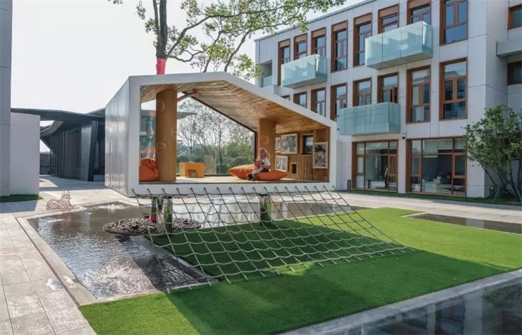 传统幼儿园大多以满足居住区配套为目的,南京星河幼儿园突破传统,在有限的条件内,运用中国“庭院”元素,使得幼儿园的空间更加丰富,并帮助孩子们认识自然、认识社会、塑造自己[5]。