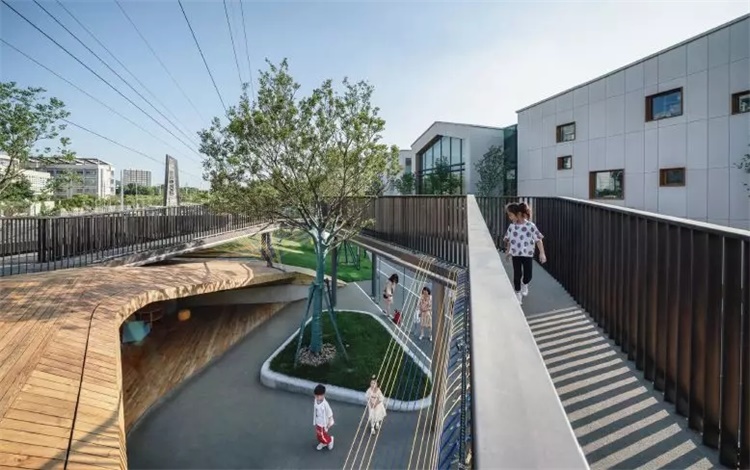本文针对南京星河幼儿园的建筑设计及其规划设计,以懵懂、好奇的儿童视角为出发点和落脚点,详细阐述了空间、自然、城市与建筑体验者三者之间共融共筑的关系。在幼儿园的空间营造中,孩子们感受到童趣自然的空间,童趣自然的空间也能潜移默化地教育孩子,促使他们健康自由地成长。本次建筑实践便是我们探寻“空间教学”的开始。