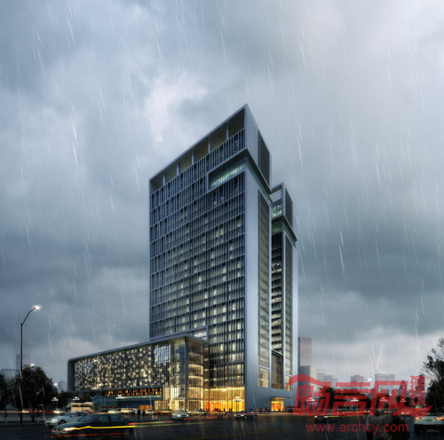 本案中建筑师以抽象的辞典和书架作为建筑形态中裙房与高层的形态写意,以“活字印刷”玻璃幕墙作为主要的立面肌理。