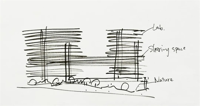 目前,九个装置中率先落地的就是位于光明科学城启动区内的脑模拟脑解析与合成生物两大科学装置。设计将合成生物平台与脑解析、脑模拟装置置于平台中心大楼内,并通过空中共享平台相互连接,加强不同学科之间的联系,打造园区的第一形象立面。