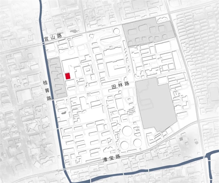 我们在前期参与到整体规划设计中,对综合园区进行整体格局的分析研究:这里拥有最具智慧型的更新土壤与根基,周边3-5公里范围内漕河泾园区与商业园区散落分布,从城市界面到园区邻里关系更多向公众打开,营造绿色、人文、创新的城市空间。