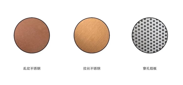 随着观众由远及近的路径变换,室内的暖光透过深灰色穿孔铝板进入视线,制造出动态的层次感;玫瑰金不锈钢装饰板配合黄昏灯光,点亮了更多的戏剧色彩。