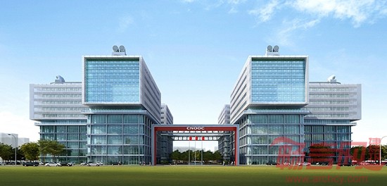 主体建筑布局简洁大气,符合集团公司地位及形象。外立面造型具有强烈的工业秩序之美,暗喻了海上钻井平台的造型,凸显企业特色。 建筑的三种基本颜色:红、白、蓝,代表了中海油集团的三种主题颜色。