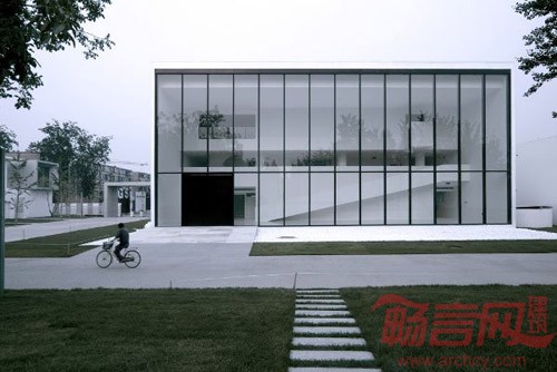 卢氏山俱乐部位于北京西郊的一个住宅区内,是供那里52幢别墅的住户使用的活动场地。建筑面积1600平方米,包括三个楼层,有咖啡厅、会议室和四间客房。俱乐部入口处三层楼高的大厅通过一整面玻璃幕墙与外界隔开。这座建筑的主要特点是室外与室内物体之间的关系。