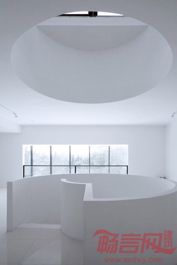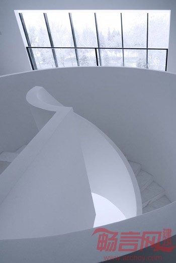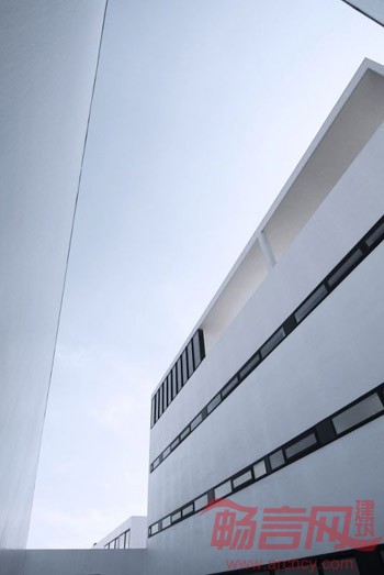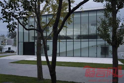 俱乐部面对整个区域的中心绿地,这里保留着古树与美景。因此,建筑师设计了一条通往大厅二层的坡道,使人们能欣赏到玻璃墙外的优美风景。俱乐部施工时遇到很多难点。入口处宽和高都是3.6米的门在设计和施工阶段就遇到了困难。11米高的玻璃墙悬挂在西侧。上层的玻璃墙高7.5米,需要进行钢化处理以满足标准,但钢化炉只能生产6.8米的钢化玻璃,因此这面幕墙无意间挑战了这个时代玻璃生产的极限。