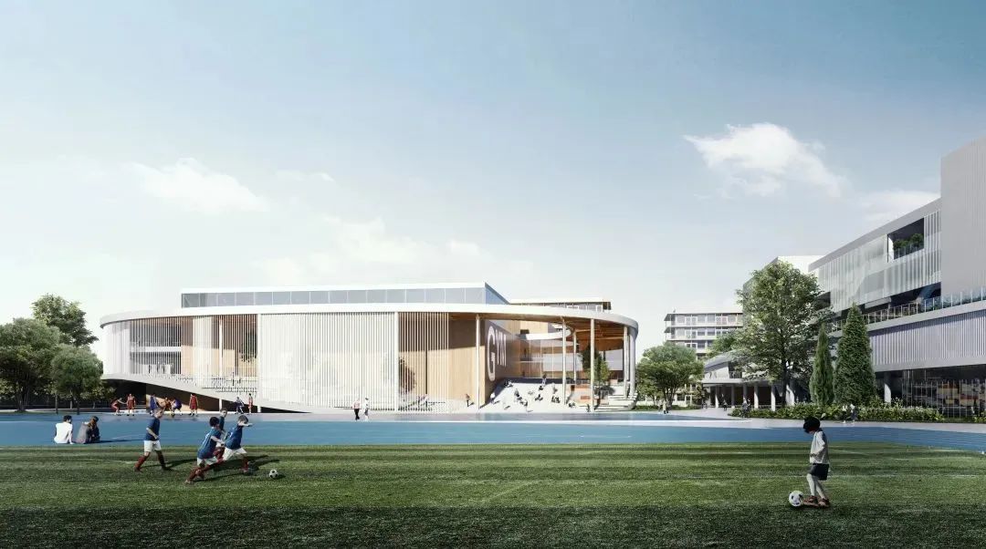 “学习社区+教学综合体”强调的是通过创新的教学空间形态最大限度激发学生的学习热情并引导学生进行自主学习和相互交流。艺体中心位于整个校园中心区域,我们希望艺体中心不仅承担学生们日常学习、体育训练和交流功能,同时也作为校园标志性、精神性场所的而存在。“住宿学院”融合了传统学校利用率很低的食堂及非正式学习空间的功能,有别于家与宿舍的概念,其内部一般设置学生客厅、简餐、生活老师,学生在这里不仅可以进行休憩,还可以进行简餐、交流和学习,将其打造成复合化生活空间。