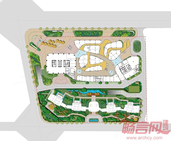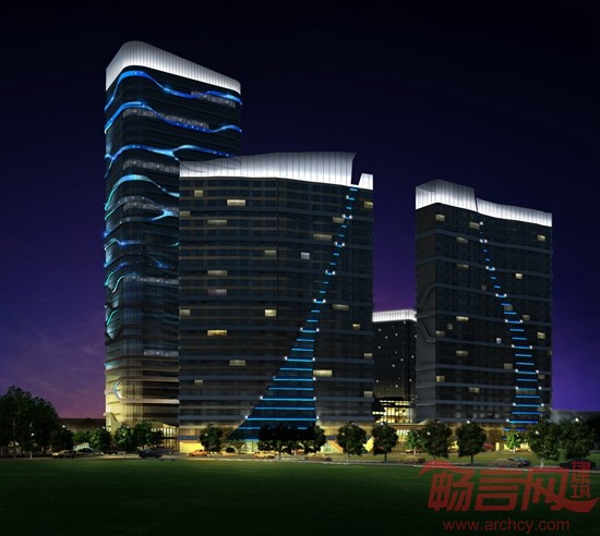 以148米超高层办公塔楼为标志的商务区沿旺庄路布置,三个广场和步行街将旺庄路商业利好极大,.两栋90米高的高档住宅组成的住宅小区沿天山路布置,作为商业的过渡及延续.。